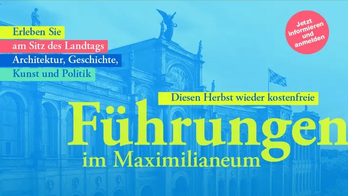 Es ist wieder soweit: Auch in diesem Herbst laden wir Bürgerinnen und Bürger ein, an unseren kostenlosen Sonderführungen teilzunehmen. An den Wochenenden im Zeitraum vom 9. November bis 14. Dezember 2025 bieten wir insgesamt 41 Führungen durch das Maximilianeum und den Bayerischen Landtag an.